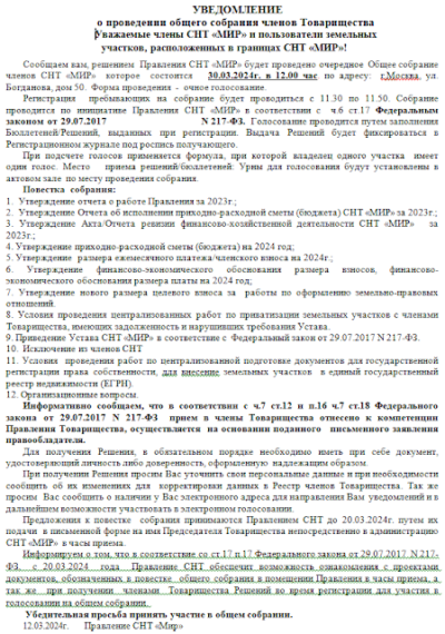 #собрание #общеесобрание #собраниеснт #мероприятие #объявление #отчёт #устав #отчётправления #уставснт При копировании материала используйте ссылку на оригинальный источник: http://sntmir.blogspot.com/2024/03/blog-post.html ЭТИ ПУБЛИКАЦИИ […]