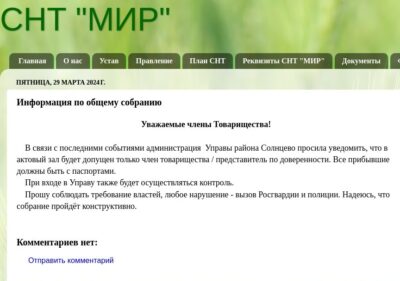 #собрание #общеесобрание #собраниеснт #мероприятие #объявление #отчёт #устав #отчётправления #уставснт #безопасность #пропускнойрежим #управасолнцево #управа #снт #снтмир Уважаемые члены Товарищества! […]