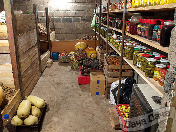 Если вы счастливый обладатель бетонированного подвала с хорошей вентиляцией, то вам повезло. За лето следовало подготовить его для хранения, проверив на сухость, работу вентиляции, абсолютно полностью очистить от старой тары, убрать мусор. Если у вас деревянные полки, то их лучше разобрать, просушить, покрыть лаком, и выбросить старые. Если металлические, то все заново покрасить.