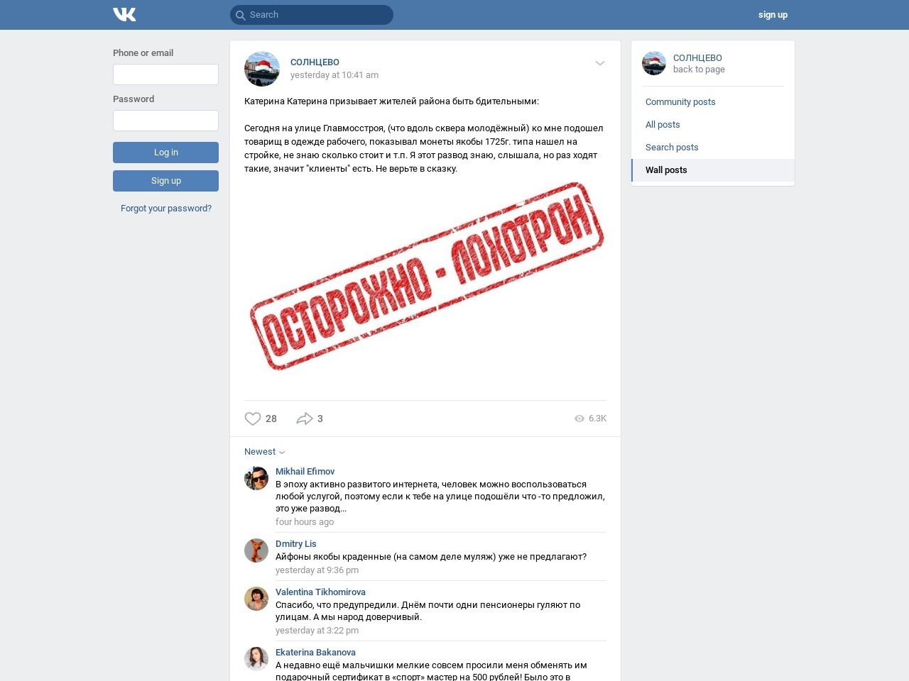 Сегодня на улице Главмосстроя, (что вдоль сквера молодёжный) ко мне подошел товарищ в одежде рабочего, показывал монеты якобы 1725г. типа нашел на стройке, не знаю сколько стоит и т.п. Я этот развод знаю, слышала, но раз ходят такие, значит “клиенты” есть. Не верьте в сказку.