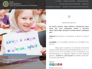 Открыта запись детей в воскресную школу «Отрок Варфоломей» храма Сергия Радонежского в Солнцево. Для записи необходимо прийти и заполнить анкету. Запись будет проходить в нижнем храме: