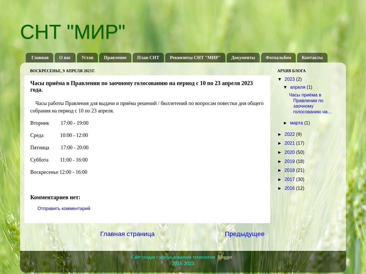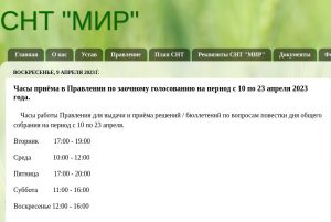 Часы приёма в Правлении по заочному голосованию на период с 10 по 23 апреля 2023 года.