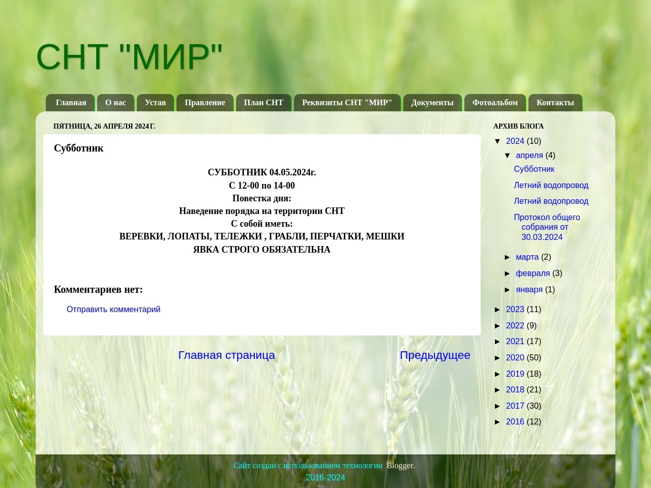 СУББОТНИК 04.05.2024г.